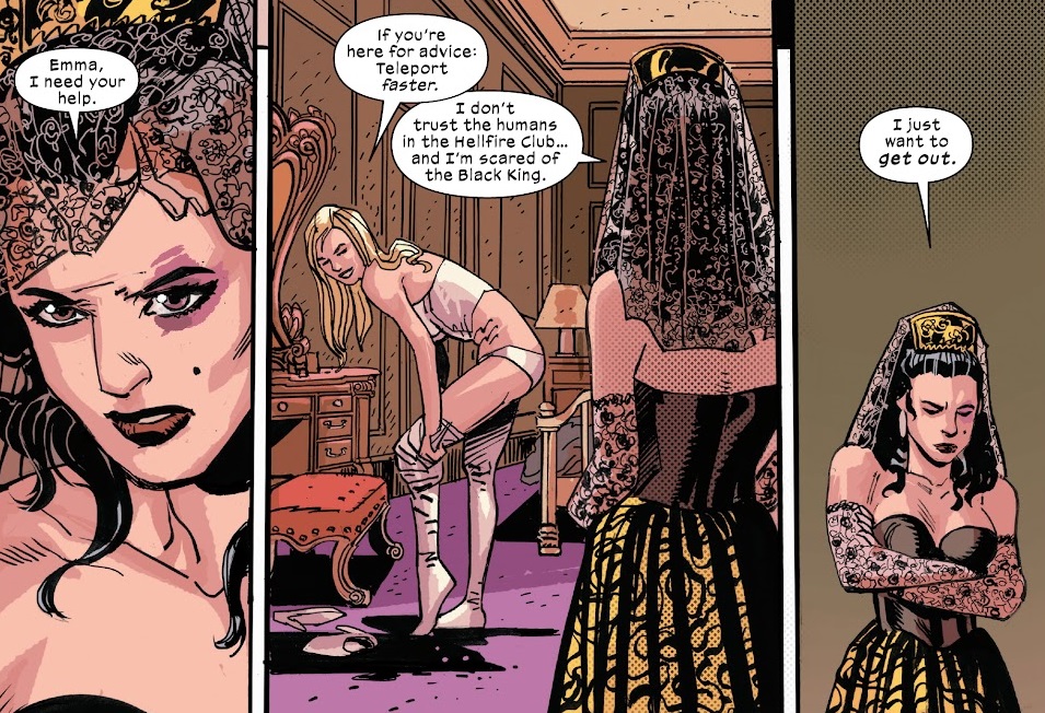 What about the tiny Gala scene setting up a proper reunion between Emma and Banshee? Isn’t he supposed to be joining the Marauders? Let’s move on to that storyline immediately, please. That way, Marauders can still be about Emma Frost, but it’ll be about her interacting with a character fans actually want to see.