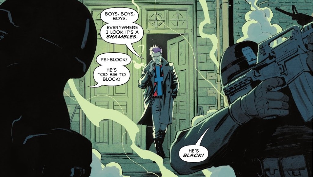 Starting in 1963, we see that Superman was friends with President Kennedy, who wanted Superman to step up as a beacon of the future — only for Kennedy to get shot. In the present day, Superman is older and a tad more authoritarian, and he’s setting up a new superteam. His first recruit is the rebellious Brit Manchester Black, who is no fan of Superman’s. Superman puts Black in a position where he can either walk away or help repel a robot invasion from the Phantom Zone, and Black’s general heroic nature gets the better of his hatred of Superman, so he helps out. And then they’re off to the races!