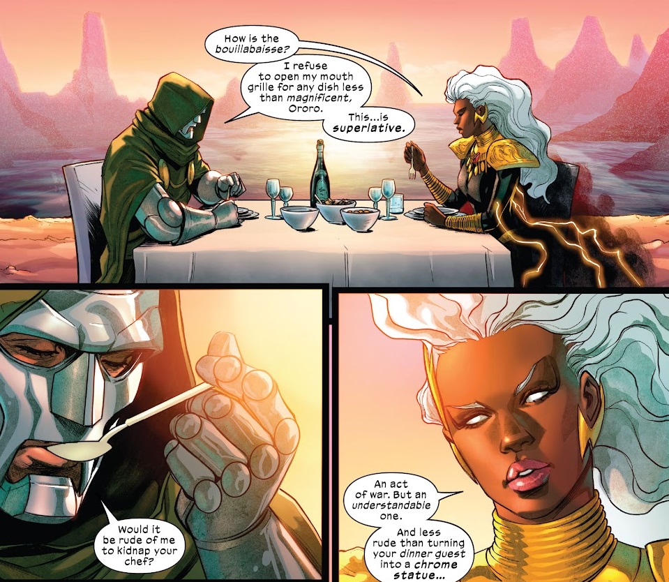 And then we’ve got Doctor Doom and Storm sitting down for a meal.