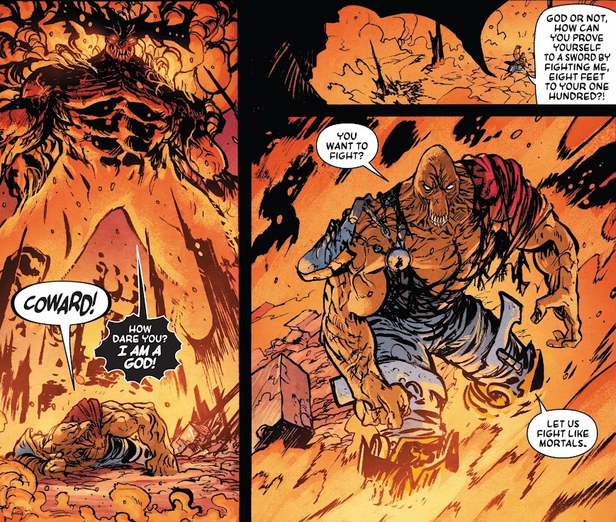 This issue has it all, baby! Johnson has delivered some great fights so far, but this one takes the cake. It’s brutal and wonderful in equal measure, a real slobberknocker to end all slobberknockers in the deepest depths of Hel. We’ve got Bill talking Surtur into shrinking down to mortal size. We’ve got the two of them battling on top of a church. We’ve got wrestling moves and punches that could shatter stars! I’m the type of reader that sometimes glazes over standard superhero brawls, but this one is not to be missed. With Johnson on both writing and art, he knows exactly how to set up exactly what he wants to show. This comic is breath-taking!