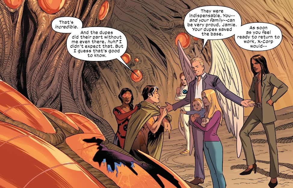 TL;DR: An expert balance of superheroics and the fun, business-mind of this series. This was an excellent new flavor of X-Men comic and I think X-Corp succeeded at what it set out to do.