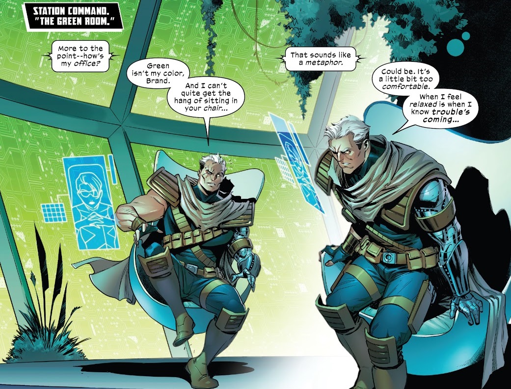 I liked this issue, but it feels like the wind has gone out of SWORD’S sails just a little bit. I like the character work, as always. We get a lot of fun Abigail Brand moments, and a lot of fun bits for a lot of the supporting characters, like Old Man Cable showing up for a funny scene. The writing is strong, the characters are used well, the art is great and there’s plenty of action. This is an all-around well-made comic book with a lot going for it — though I suppose Wiz Kid fans aren’t going to be happy. I feel their pain. The only real nitpicks I have for this issue are that the Imperial Guard get more attention than the X-characters, and that this issue relies a lot on people dying to be interesting. The good guys and bad guys literally just trade one death after another in the fight. Killing members of the Imperial Guard isn’t interesting because they’re are interchangeable and replaceable. Who cares that they’ve killed the 28th incarnation of Fang? And killing X-characters isn’t interesting because of resurrection. It sucks in the moment for Forearm, but his death carries no stakes because of the entire point of the Krakoa era.