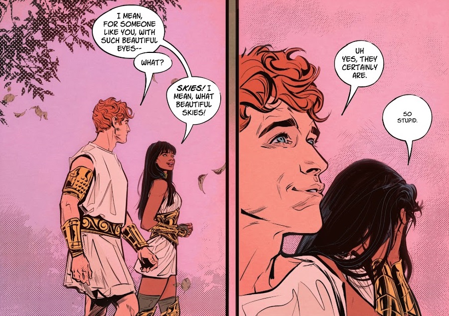 Let’s start with the good. I like the energy of this comic. And I especially love the artwork. Everything about this comic looks absolutely gorgeous. Melo fits in perfectly with Jones, the two of them drawing some beautiful female heroes, all of whom are surrounded by luxurious worlds and characters. I like Greek myths as much as the next dork, and the centaurs, Pegasuses and Olympuses of it all look phenomenal. And the artwork does indeed create a really enjoyable energy to the whole thing. It all flows nicely and feels meaningful. I just don’t think it’s enough to carry this series because I just can’t stand nearly anything being done with the writing, characters or storytelling.