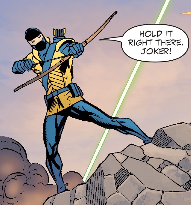 So if he’s disqualified, how about Amalgam’s other, even dorkier archer character? Arrowcaster was a combination of Roy Harper and Spymaster, who was quickly killed in a fight with Speed Demon. The less said about him the better, but he did still exist and was quite dorky.