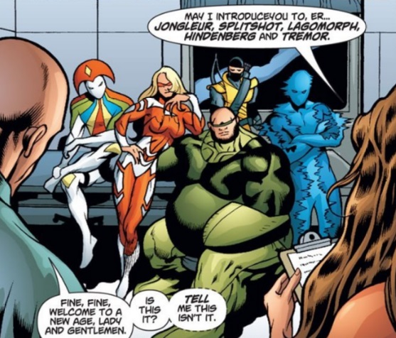 But oh no, we’re going one level deeper. For you see, The Inferior Five are part of the DC Comics Universe, making them fair game for the brilliant mind of writer Gail Simone. When she was writing the original Secret Six stories as part of the whole Infinite Crisis event back in the day, Gail created legit, bad guy version of the Inferior Five to join Lex Luthor’s Society of Super-Villains. They barely existed in the actual comics, but the Superior Five were Tremor, Jongleur, Lagomorph, Hindenberg and our boy Splitshot.