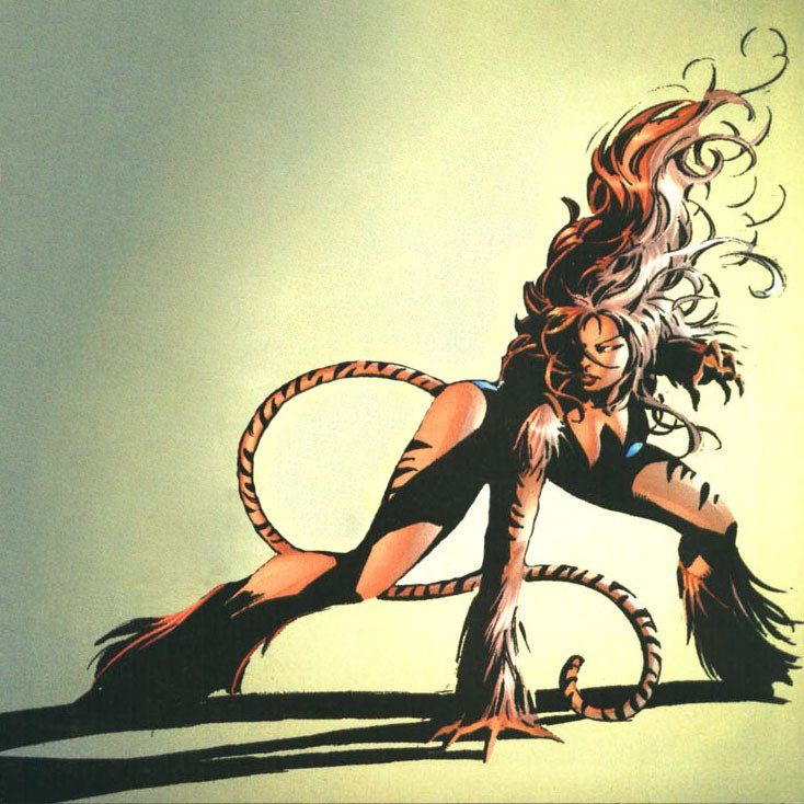 Speaking of tiger characters who have yet to get a movie appearance, here comes Tigra, a longtime Avenger who doesn’t even warrant a TV show on Disney+. Greer Nelson started out as The Cat, with basic human enhancements and crime-fighting prowess. But apparently that wasn’t enough. It was later decided to turn The Cat into Tigra with a really weird, roller coaster of an origin story. It turned out the mad scientist who gave Greer her powers was actually a member of the Cat People, an ancient race of feline humanoids who practiced some dark magic. When Greer was mortally wounded as The Cat, the scientist and the Cat People gave her the option to transform into a tiger/human hybrid based on their legendary defender. It’s pretty wild. And Tigra has been one of the neatest-looking Avengers ever since!