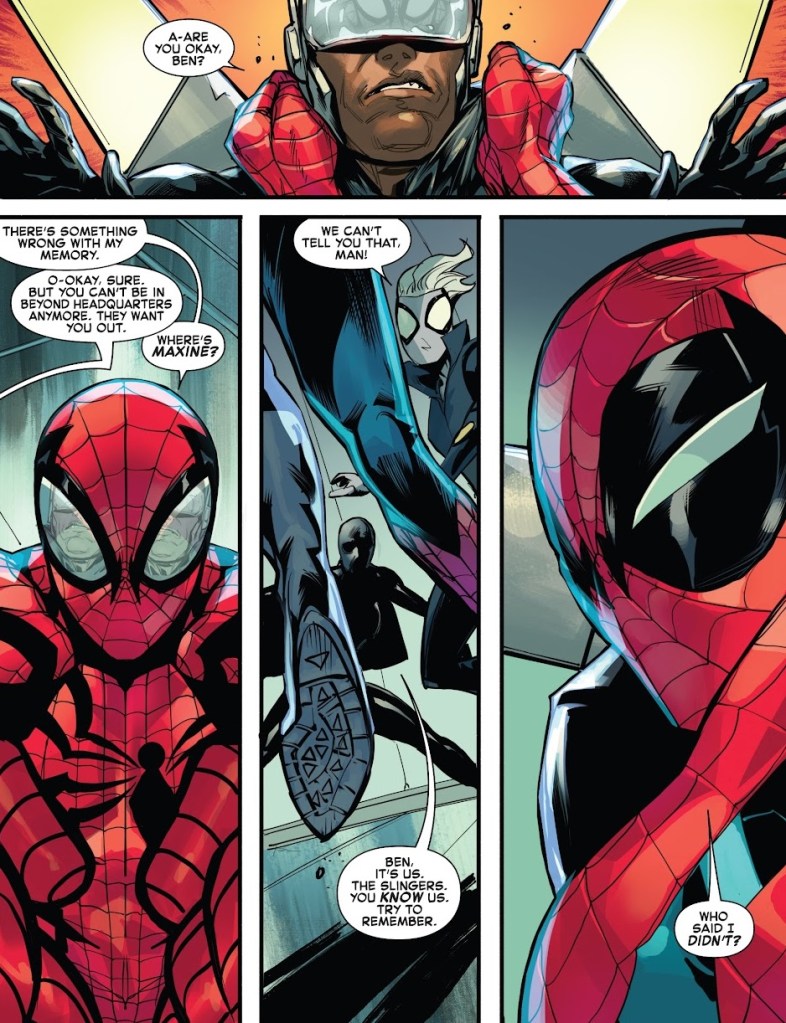 Maxine convinces Ben Reilly that if he can get Peter to put on a fancy mechanical helmet, than all of Peter’s memories can be transferred back to Ben. It’s enough to push Ben all the way over the edge and he and Peter have a big, epic fight, all while Maxine turns on the self destruct protocols for the lower levels of Beyond, and she leaves the company. Meanwhile, Janine shows up to rescue Marcus, Ben’s handler, because he’s an alright guy.