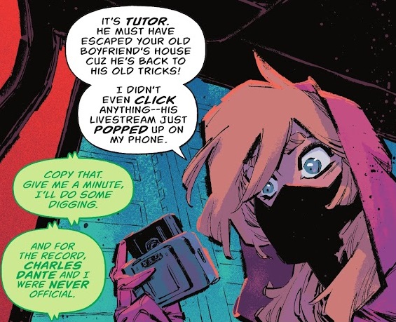 So I ranted about this at length last issue, and I’m sorry to see just how stupidly it played out with this issue, hence my invoking the “idiot plot” definition at the top of this review. When the Batgirls defeated the Tutor in the previous issue, instead of turning him over to the police (which is what they do with the Saints this issue), they decided to randomly take him to Charles Dante’s house for treatment. They barely know Dante, and apparently couldn’t even be bothered to do enough of a background check to find out that he was once a doctor at Arkham. Yet they turned this dangerous criminal over to him and just left. And now, immediately afterwards, they’re shocked that Tutor “escaped” Dante’s house and has gone back to harming innocent people. If your story only works because your characters act like idiots, then it’s not a well-written story.