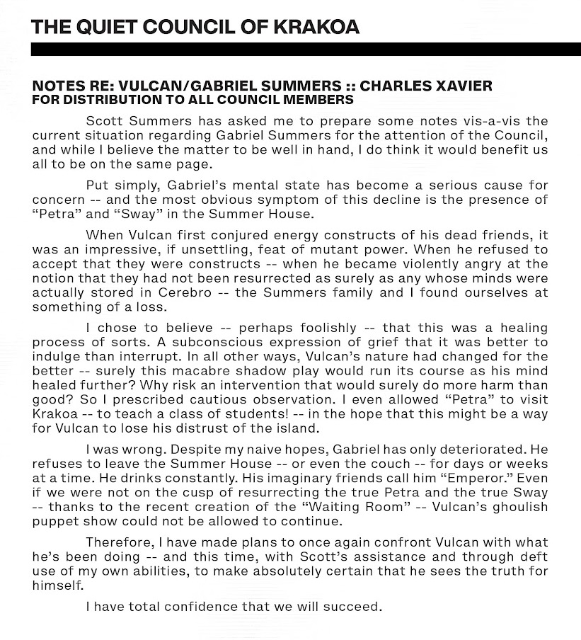If you don’t know, Petra, Sway, Vulcan and Darwin were a retcon from a few years back that, honestly, I never liked in the first place. The Deadly Genesis retcon retold the story of when the original X-Men were kidnapped by Krakoa, back when he was just an evil island monster. In the actual story from long ago, the original X-Men were kidnapped, so Charles Xavier put together his second team, with members like Wolverine, Storm, Colossus, Nightcrawler and more. It was a classic change in status quo, one of the biggest moments in the history of the X-Men.
