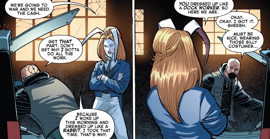Though I am curious when White Rabbit became a power player. I’m a big White Rabbit fan, and I’ll admit I haven’t read her most recent appearances. But it feels a little weird that she’s a respected and serious bruiser/lieutenant in Tombstone’s gang. I like it, but it’s still a bit unexpected.