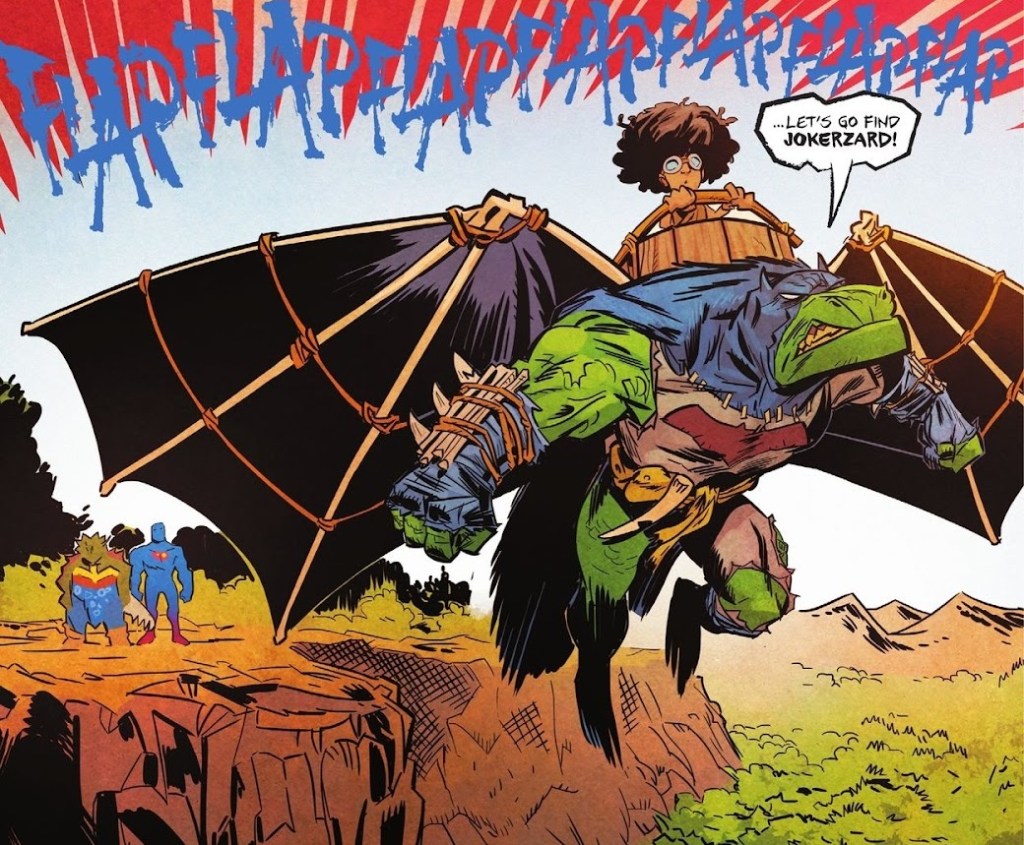 My favorite dinosaur is the Ankylosaurus. Darkseid as an Ankylosaurus? Heck yeah! But anyway, the artwork in this issue is back to mostly normal, and that makes for another solid issue. I don’t know why this series needed multiple artists though. They couldn’t delay the issues to let Gedeon, the writer, draw every issue? I think that would have been best. But at least Mikel does a much better job of matching Gedeon’s style, making for a stronger issue throughout this time around. And the artwork really is making and breaking this series. When the art is this strong and this clear, the issue soars.