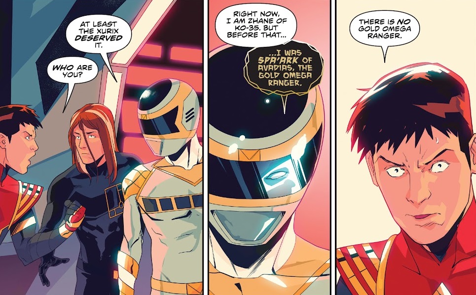 The momentum is strong and the story is interesting so far as we race towards Parrott’s grand finale. We learn a lot more about the Death Ranger, who makes for an interesting villain. I have forgotten how much we know about the original Omega Rangers from back in the day, but the idea that they had a rogue member is a fun one. That this rogue member conquered death is an interesting wrinkle, and it mostly serves to create some solid threats for our heroes to face. The Omega Rangers, including Yale, turned into zombies? That definitely works. Requiring a team up between their supporting characters and the Mighty Morphin team? Heck yeah, bring it on!