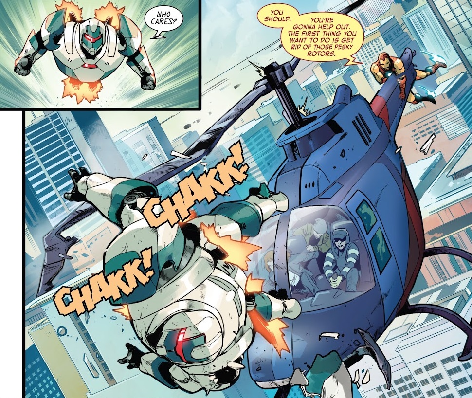 If I had any complaints about this new relaunch it’s that I’m not particularly interested in seeing Tony Stark at his lowest anymore. He’s been at his lowest for years now. I realized real-life billionaires are super-villains, but surely Tony Stark could be an example of a cool, fun billionaire? Perhaps we’re building to that. Duggan does a great job of putting Tony at rock bottom in this kick-off issue, giving our hero a starting point for his character growth. So at least we’re at a good place, storywise, by the end of this first issue. I’m here for that.