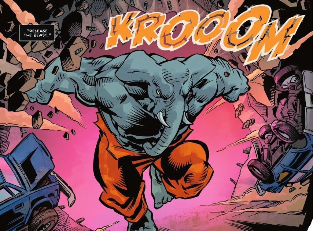 The most prominent elephant-themed character in comics is another mutant from the world of the X-Men, only this one has made more than a single appearance. Like the others, Mammomax is just a big, strong elephant dude. He started out as muscle for one of the random incarnations of the Brotherhood of Mutants, but gets to keep showing up in big group shots. He was with the 198 after M-Day. He was killed. Then he got to show up on Krakoa with the other resurrected mutants, even getting to join into a fight or two. Good for him! Oh, also, Mammomax can spit corrosive stomach acid, so maybe he’s not just an elephant guy. Can real elephants do that? Does anybody know?