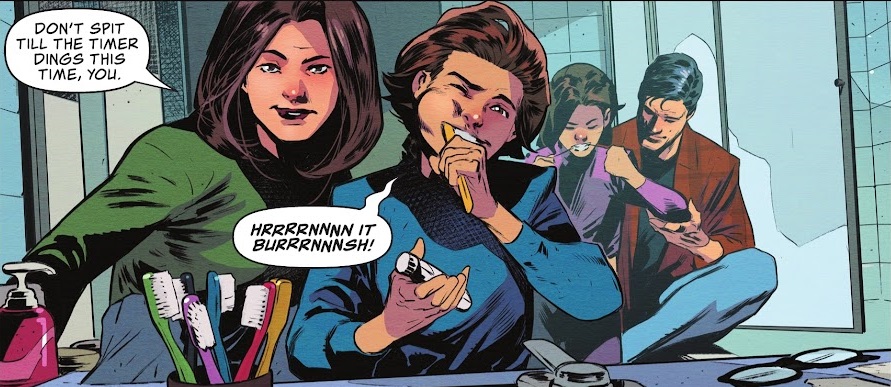 I fully support the Super-Family idea. The Superman comic can focus on just Supes. A comic about the whole extended Family sounds fun to me, and hopefully we get plenty of characters together doing family stuff. Though this is the second issue where they all just kind of gather in Clark and Lois’s apartment to talk about current news. There’s so much potential to be had with the family issues, and I look forward to this series really exploring that stuff. For now, this is a solid issue where Superman and his pals beat up Metallo, all while that threat grows larger and more dangerous.