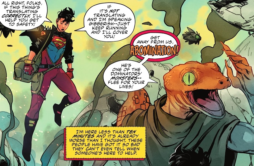 This is a perfectly reasonable, perfectly fine first issue that sets up the title character into a status quo and sends him on an adventure. That’s how comic books work, and it works just fine in this issue. Superboy is written well and is put in a very reasonable and understandable place at the start of the issue. Personally, I think sending him out into space to some random planet is a bit too much of a stretch, but that’s just me. I like grounded stories. But I digress. We’ve got Superboy looking to feel useful, and he answers a random distress call from a random planet out in space. It works, and it keeps the strong character foundation. Then he fights a bunch of super-powered clones, with a lead villain that also works as a villain. It all works.