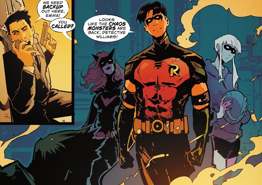 And the other elephant in the room: no Bernard! He’s in the issue at the beginning and they rush him out when Batwoman crashes in, and he’s thankfully gone for the rest of the issue! Awesome! Such an albatross. The previous issue revealed that Bernard knows Tim is Robin, so at least that was taken into consideration. But the issue did nothing to endear Bernard to me. He still sucks, and his absence is much appreciated in this issue. Instead, it’s Tim Drake being a good superhero, being a good detective, hanging out with characters who don’t suck. It’s Robin being awesome. I don’t know anything about the Chaos Monsters, but I assume they came from one of those earlier stories Fitzmartin wrote. That’s fine. The ending stinger with the villain grabbing Batwoman is more than enough to bring me back for the next issue.