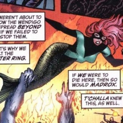 So I was able to find the only superhero mermaid in the entirety of comics, and she’s not even a real mermaid. She’s a mutant, and she only existed in the Earth X series from 1999. I never read those Earth X books, so I don’t know anything about Mermaid or her life. But she was one of the premiere X-Men of that series and a staple member of the team. Good for her! I’m surprised that we’ve never seen a 616 version of the character, though there has been a mermaid mutant spotted in some Krakoa pages in recent years.