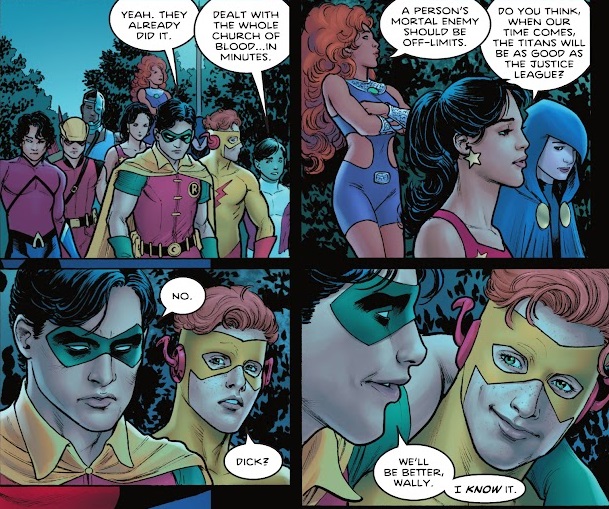 So, uh, Taylor wrote and Redondo drew this issue entirely in the first person, from Nightwing’s perspective. Best comic? Best comic.