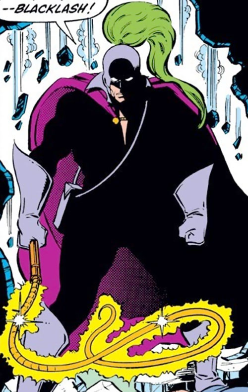 The first Whiplash was a guy named Marco Scarlotti, a mafia goon who used whips and went undercover to take on Tony Stark. He eventually came out of cover to do various super villain things, before Justin Hammer hired him and he changed his look and gear to become Blacklash. He continued to go on super villain adventures, often against Iron Man. At one point he retired and started a family, but they got killed and he returned to a life of crime as Whiplash again…only for him to get killed by some sentient Iron Man armor. Poor bastard.