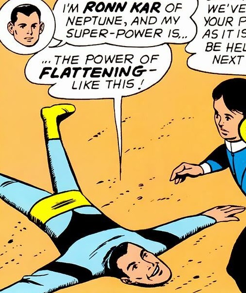Who is he: Ron-Karr is an odd duck. He’s got the power to turn 2-dimensional, so his whole body goes flat. He was rejected by the Legion of Super-Heroes and eventually fell into the Legion of Super-Villains, just because he wanted to feel like he belonged somewhere. This eventually led him to the Subs, which was a good place for him.