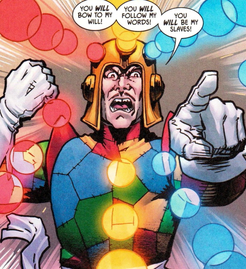 Crazy Quilt is as crazy as he sounds. He’s been around since 1946, a villain who suffers an eye injury so that he can only see bright colors. He leaned into this madness with a really colorful costume, and a helmet that emits bright rainbow lights that allow him to see in most situations. The helmet and lights also have mind control and laser powers, so he’s not just a weirdo in a funky costume. Crazy Quilt is a Batman and Robin villain who just keeps popping up like a bad penny every now and then.