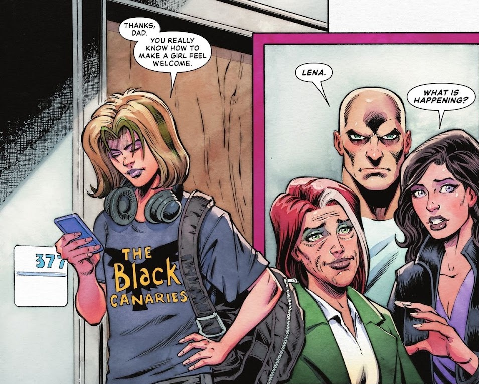 Meanwhile, Lois Lane checks in on Lex Luthor in the hospital and gets a big speech from Lex befitting an 850th anniversary issue. She thinks Lex is still evil, but he insists he’s good, probably. Then his mother shows up, and brings with her Lex’s secret daughter, Lena!