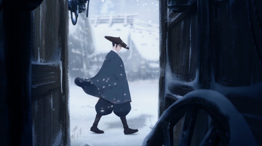 The Blue Eye Samurai themselves is cool as hell. They open the show walking through the snow, and the design is absolutely perfect! Blue cloak, giant hate, slender frame, nifty eyeglasses and a really badass sword. The main character in this series rules and pulls you in from the very beginning, then easily carries all 10 episodes. They fight like the wind, push through the pain and there’s so much story to tell about them. They are a mighty protagonist.
