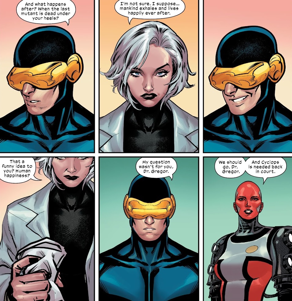 Overall, the story isn’t as impactful as the original House of X that kicked things off. The trial of Cyclops has been building all year, but it was over quickly and was very one-sided. I like that Xavier is working his own angle in the background, but there’s no real explanation for why he hasn’t hooked up with the X-Men to coordinate. Still, I like the monkey wrench angle both he and Polaris might provide. And I like the overall idea of the good guys defeating the bad guys. But I don’t really feel any sort of spark with this story. We’ve just reached the moment where the good guys will punch the bad guys into defeat.