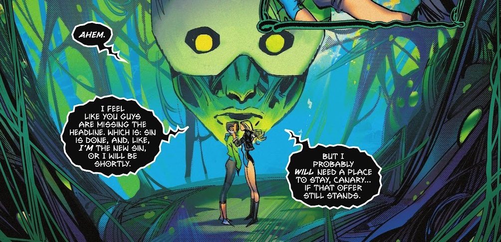 So OK, let’s not avoid the elephant in the room. After four phenomenal issues with artist Leonardo Romero, who has a very distinct style, this issue switches completely to new artist Arist Deyn, who also has a very unique style. It’s a jarring transition, if I’m being honest, but I’m not sure how I feel about it yet. Deyn tends to draw women with the same cutesy face and slender bodies, but it sort of works for Birds of Prey. The artwork can be a little chaotic at times, but that’s also not a terrible thing. It’s just jarring, but I’m more than willing to give it a chance if they continue for more issues. I’m just disappointed that DC decided to switch artists so completely in the middle of a story rather than give Romero more time, if that was indeed what happened here. I don’t know. All I know is the look is different and Deyn will take a little getting used to going forward.