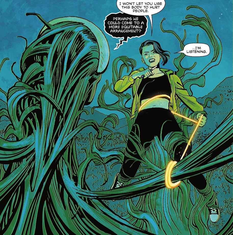 I really like the idea of Sin and Megaera teaming up. Part of it comes off like a loss…but then, like, there are worse superhero origin stories. And it’s not like Sin was a major character or anything. Now she’s sharing her mind with some otherworldly deity who is skilled in sarcasm. Sounds like a level up for this character! Hopefully she gets to be a permanent member of the team, if that final page tease is legit that the book will have a rotating cast. I think that could be fun! Keep a core of Black Canary, Meridian, Sin and Batgirl, and then add on fun new characters for each adventure. I’m fully on board with that!