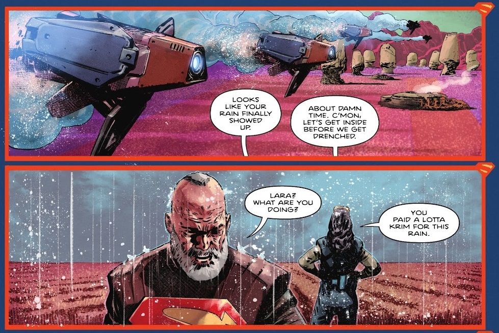 The Earth-based storytelling is also a very good introduction to the new Superman. He’s moodier, he’s grimmer, but he’s still using his power to help people. In this case, he’s helping those crushed beneath the corporate boot, and that’s a good look for a new Superman. He’s got a talking supersuit, so that’s fun, much like Tony Stark’s AI or even the Handroid from Void Rivals. That gives Superman someone to talk to during his adventures, at least. This issue features a lot of Superman fighting soldiers while his powers rage almost out of control, and that makes for a fun first issue to get us into the swing of things.