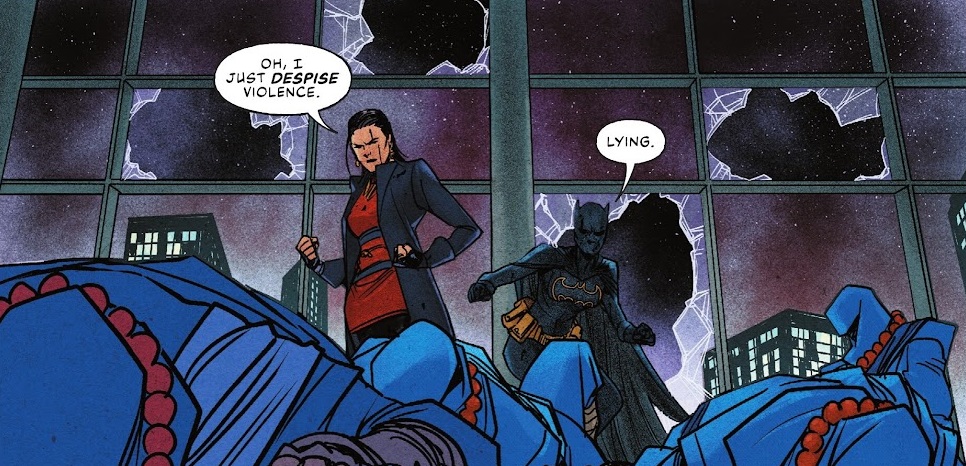 Lady Shiva, mother to Cassandra Cain, has summoned her because she claims they are being hunted by a mystical, ancient ninja clan. Batgirl wants no part of it, until they are ambushed and have to spend the whole issue fighting or running.