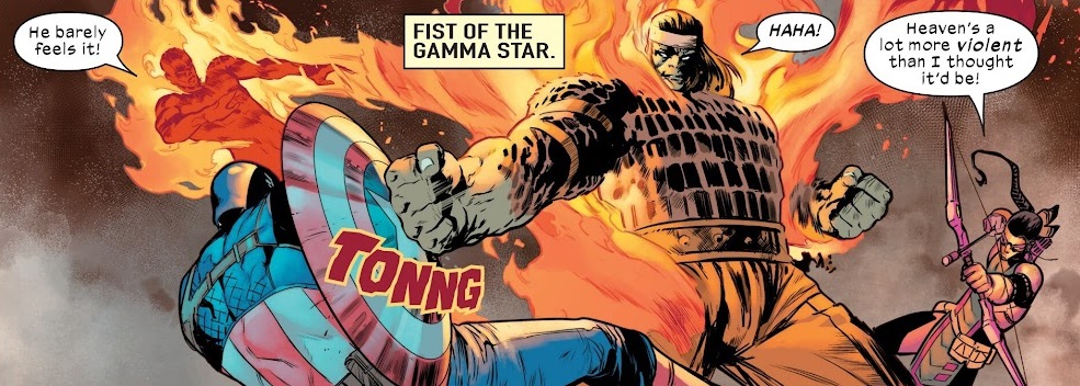 The Ultimates plan to raid a facility where heroes have been imprisoned, but it’s a trap and the Hulk brings them to Ultimate K’un L’un, where he is the Iron Fist and king of all Seven Cities of Heaven. And all the weapons are also gamma-irradiated monsters. And oh boy, the fight does not go well for the Ultimates.