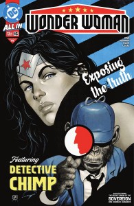 And then when Chimp runs into the obvious walls of arresting and holding the Sovereign accountable for murder, he turns to the Fourth Estate to actually bring some level of justice to the villain. As a reporter myself, I love that! I love how Wonder Woman is fighting him on levels he couldn’t anticipate or fight against. It’s a wonderful circumvention of expectations, both ours and his. And King just writes a very entertaining and enjoyable Detective Chimp, especially since Chimp is clearly toying with the Sovereign the entire issue. It’s just a delight!