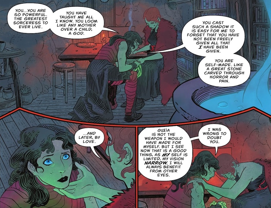 I thought killing the monster with a big sword cleave was a bit too easy last issue, and I was right. So to finally put it down, a Medusa appearance is quite excellent! I did find it a little funny that Barbara had to explain to Etta who Medusa is, and that she did it in the most roundabout way possible, but that’s just what needed to be done to get in all the important exposition. It drew a parallel between Circe and Athena, and I liked that. Then, suffice to say, the artwork remains amazing. Very unique, easily able to capture the scope of all the insanity that’s happening. Truly career-making work.