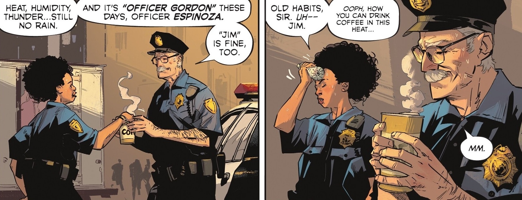 I kind of wish there was a different artist on the series. Jimenez is obviously amazing and does a great job, but he’s also been the Batman artist for a long time now, and I think such an important relaunch could have used a new look. But I have no actual complaints about the art, and it’s not like I want Jimenez to lose his job. I just think a new look for a new #1 would have been nice.