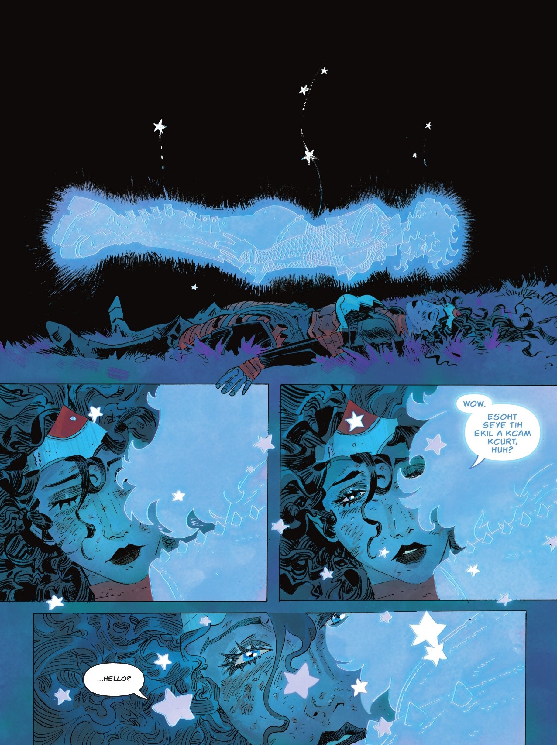 It’s just a brief scene, but it’s gorgeous! Zatanna appears in that ethereal form and always talks in backwards language all the time. It was slightly difficult to read, but that was hardly a problem. The moment is just wonderful, connecting these two characters for what will no doubt be an exciting confrontation later on. Considering how steeped Absolute Wonder Woman has been in magic and witchiness, it makes perfect and total sense to bring in Zatanna as an antagonist and definitely builds the hype for future stories. Absolute Batman had the Joker hanging over its head since the beginning, but Wonder Woman doesn’t have a villain like that (even though I’m also looking forward to Absolute Cheetah). Zatanna is a perfect choice for an impending future foe, and her introductory scene in this issue is everything one could hope it would be.