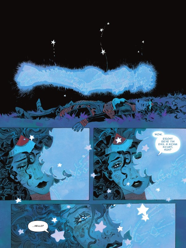 So the whole chaos magic spirit as a villain didn’t quite come together for me. I wasn’t entirely sure exactly what we were dealing with. But I very much enjoyed Wonder Woman communing with Mother Gaia and then Gaia just trashing the creature. Wonder Woman’s connection with the Gods/Goddesses and whatnot is a very enjoyable part of this series as a whole. I really enjoyed the whole process Diana must go through to summon an audience with Gaia, and how it’s part of her firmly established bag of tricks in this series, to commune with the various deities and spirits. That takes up the bulk of the issue and works very well to flesh out Wonder Woman’s power. Even if it’s done so against a mostly faceless, meaningless foe.