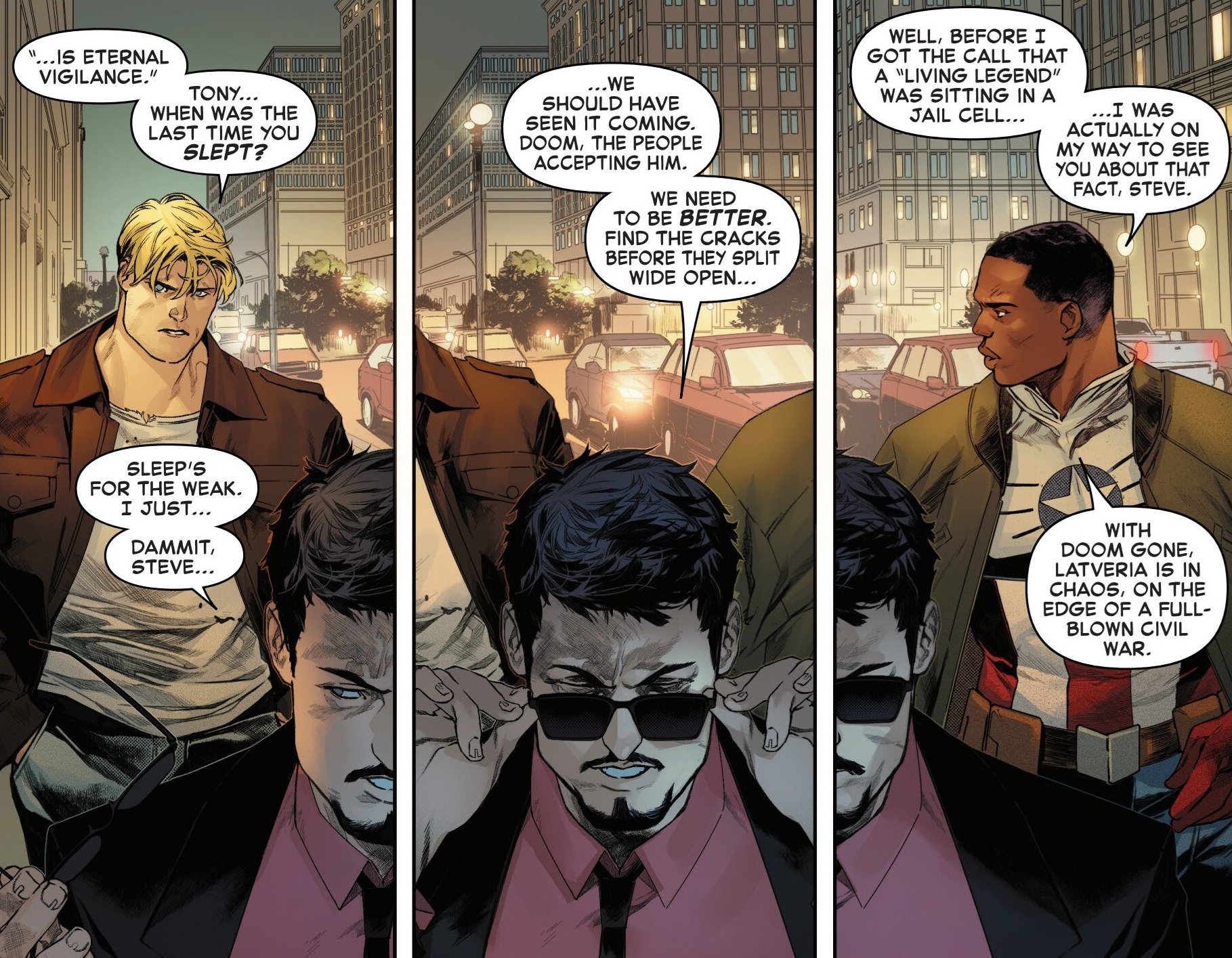 In the wake of One World Under Doom and his disappearance, Latveria is on the verge of civil war. Nick Fury Jr. has put together a new SHIELD that’s basically just a strike force, and he recruits Captain America to join, though Cap is a bit uneasy. They train and they head in country, only to be immediately stopped by the Red Hulk, who is there to bring democracy to Latveria on behalf of the United States of America.