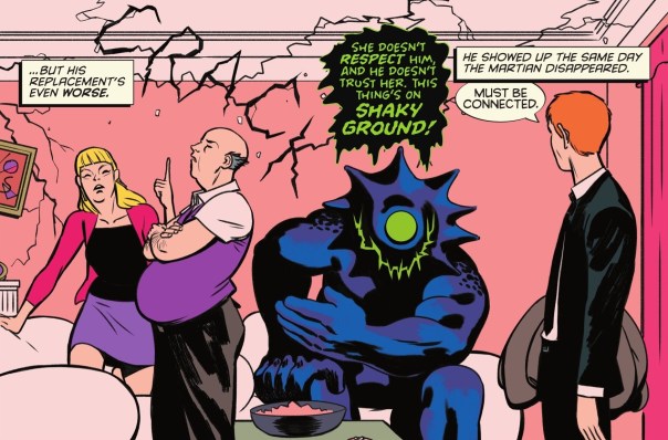 Anyone reading my reviews of Absolute Martian Manhunter needs to keep in mind that I am a dummy who is very bad at catching subtext. So it’s very likely this comic isn’t hitting me as strongly as it might other people. That’s entirely on me.