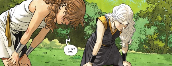 Whatever the case may be, this first issue does a fine job in setting up the story, with a solid surprise at the end…though I can’t remember if we were supposed to think Diana was dead or not. Also, the sudden arrival of The God Killer Sword is a bit of a pill to swallow. I didn’t read K.O., so the sword means nothing to me, and just sorta shows up in an story that has been ongoing for a good, long while now. Is it the only weapon that can kill the Matriarch? I guess we’ll find out.