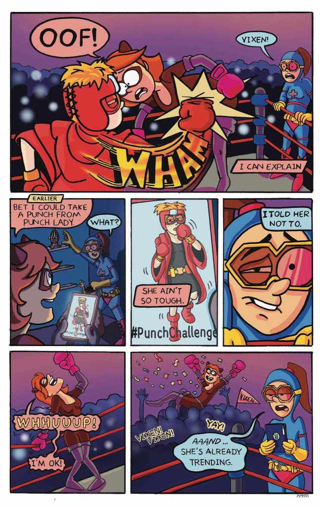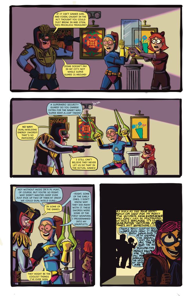 Jesse did the artwork and lettering on two of the short comics: Punch Challenge and Dual Wielding. He also designed the new character Super Guard, who appears in the second comic.