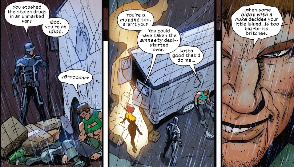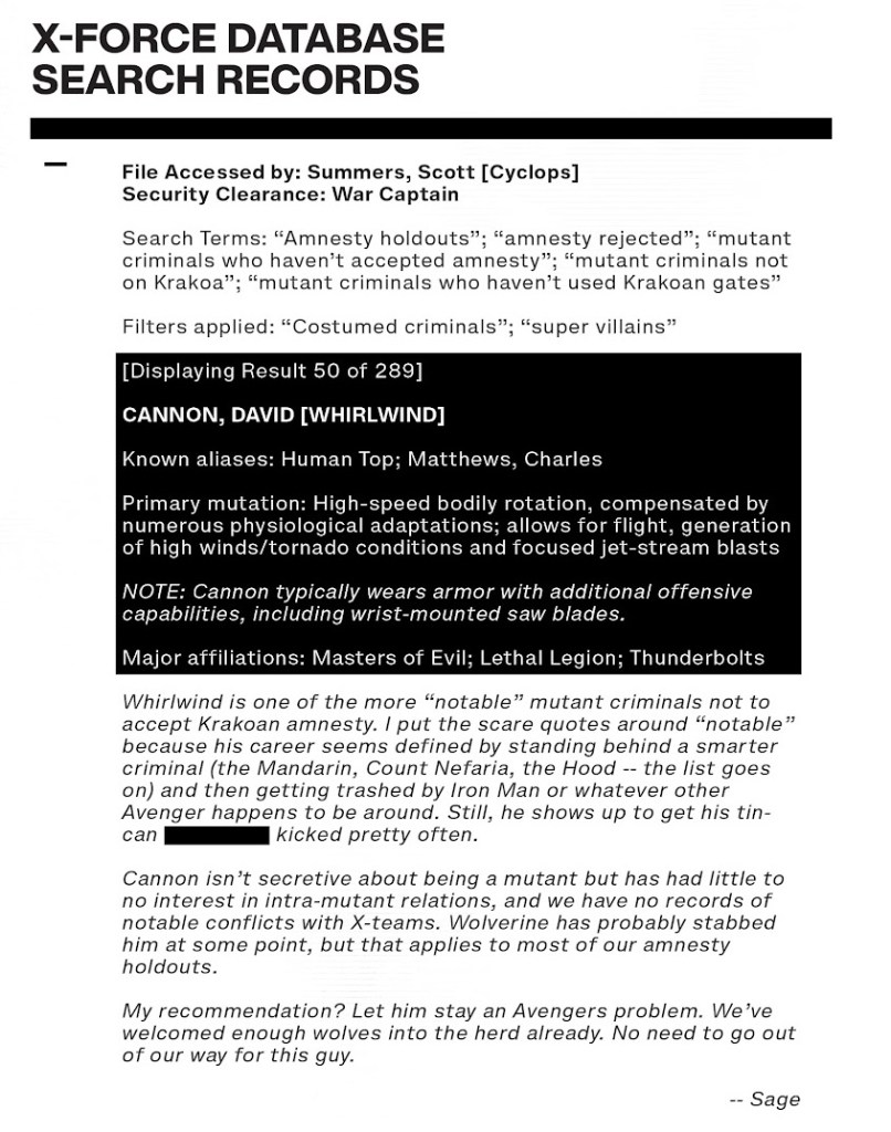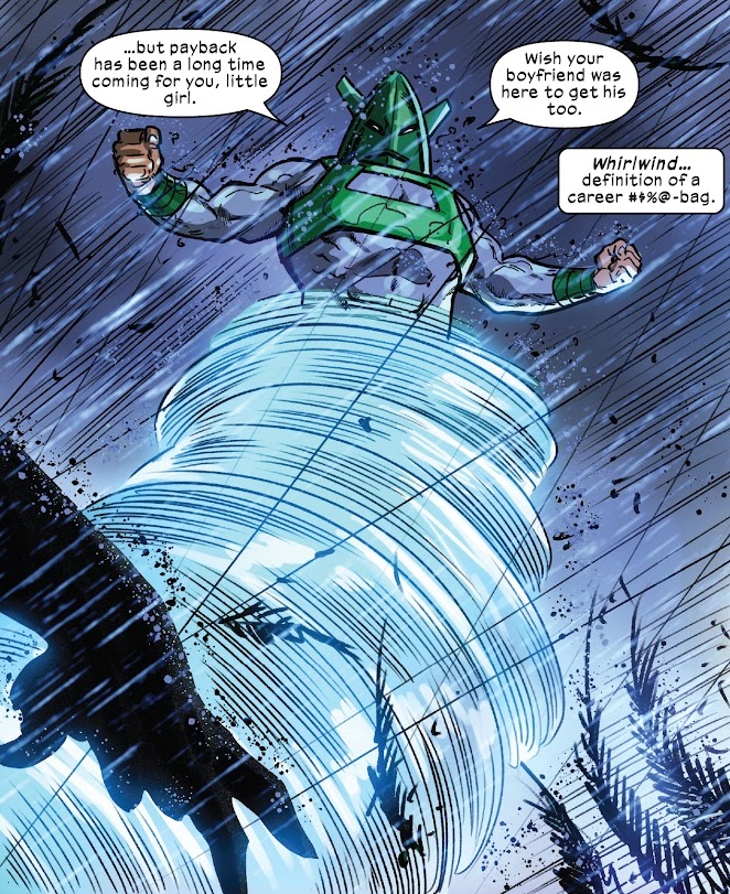 Until this week! Whirlwind was the villain in this week’s X-Men Annual comic, where he gets into a fight with Firestar and Cyclops. And after they kick his butt, they bring up the fact that Whirlwind chose not to move to Krakoa.