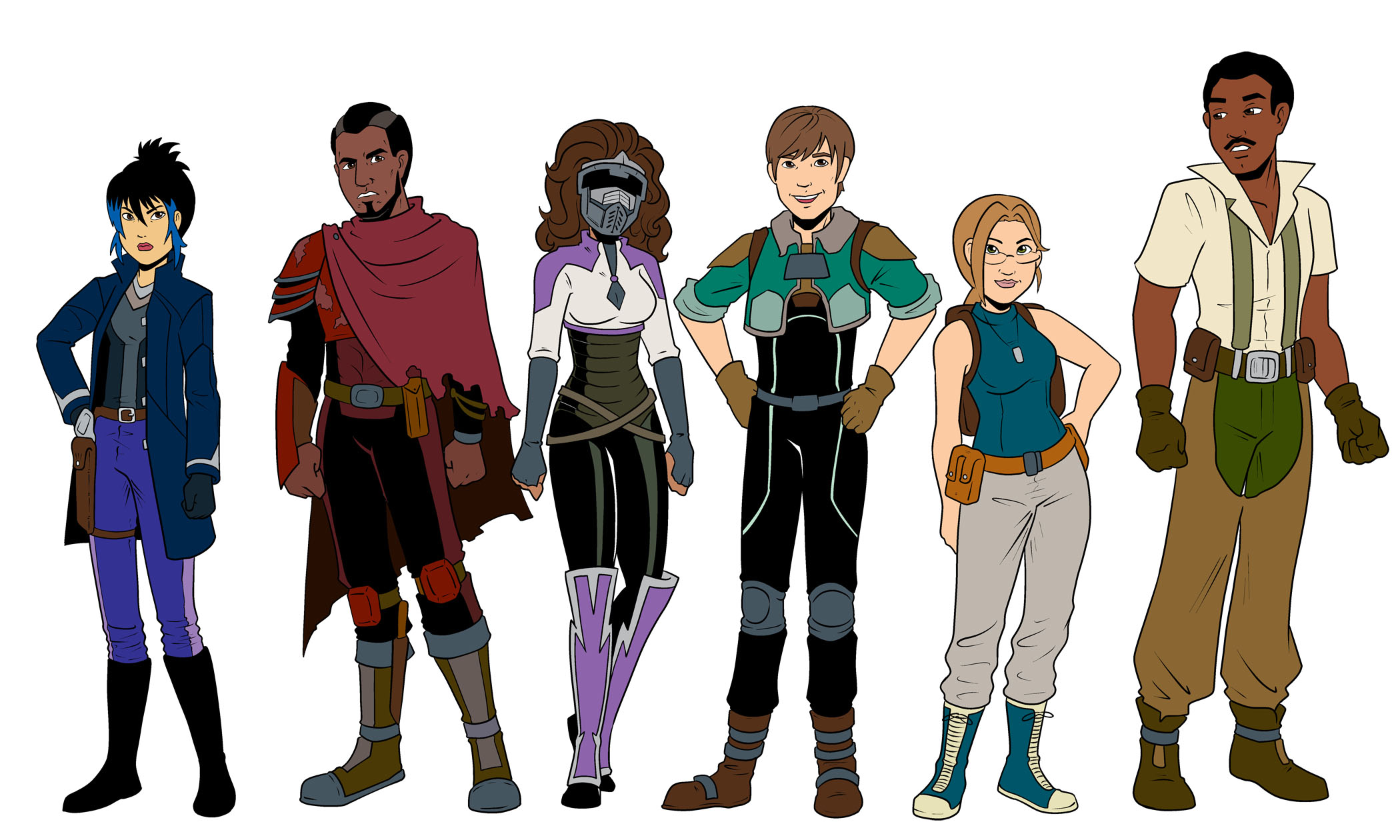 The first two characters on the left are Tameron Dackard, the former Forever Blue, and Roth Rivas, the former Forever Red. The rest of the Foreverteers haven’t been designed yet, because they don’t factor into the story until later.
