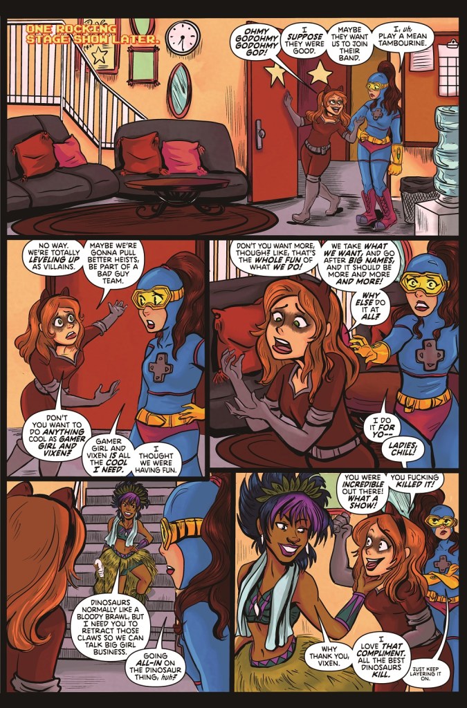 I am beyond thrilled at how Regina has turned out as a character. She sees herself as the Beyonce of Crime, a rising star dedicated to her work. And she sees in Gamer Girl & Vixen the chance to boost her popularity and add some new talent to her crew.