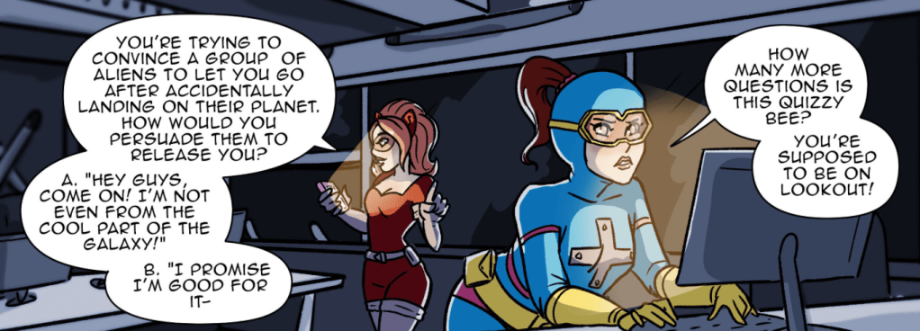 It’s Friday, so I’ve got another Gamer Girl & Vixen mini-comic to share with everybody! This time, artwork from Luke Beatrice gives us Quizzy Bee! I’ve had so much fun making this mini-comics, and they’re going to be a stretch goal in the upcoming Gamer Girl & Vixen Kickstarter launching later this month.