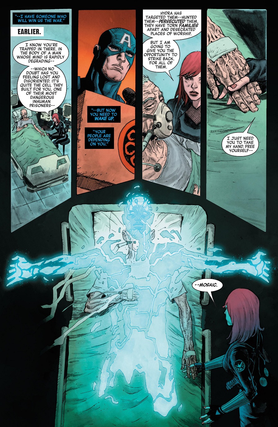 As the foremost internet authority on Mosaic, I consider myself one of his biggest fans. So I giggled a little bit when I saw him randomly pop up in Secret Empire #7. Writer Nick Spencer introduced a few issues ago the idea that Steve Rogers and HYDRA had this mysterious old man in a hospital bed as a captive. Who was this old man? What secret did he hold that would be key to the Black Widow’s efforts to stop Captain America?