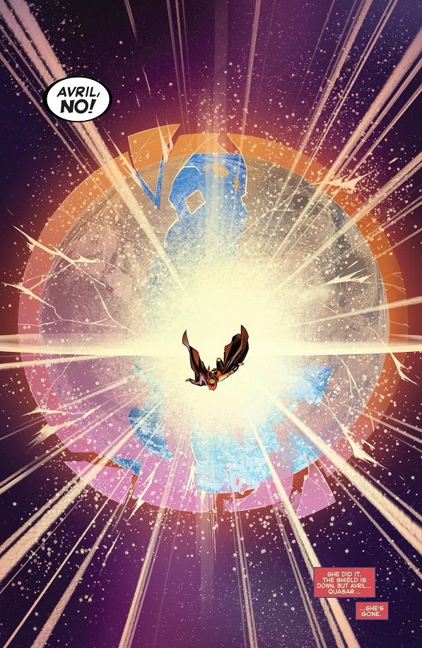 I became interested in Avril when I did a List of Six looking at what LGBTQ+ characters could star in their own solo superhero movies. Honestly, there aren’t many stand alone gay characters in comics…and I settled on Avril as Quasar being Marvel’s best bet. Since then, I’ve been particularly interested in the character…so it’s a shame she’s dead.