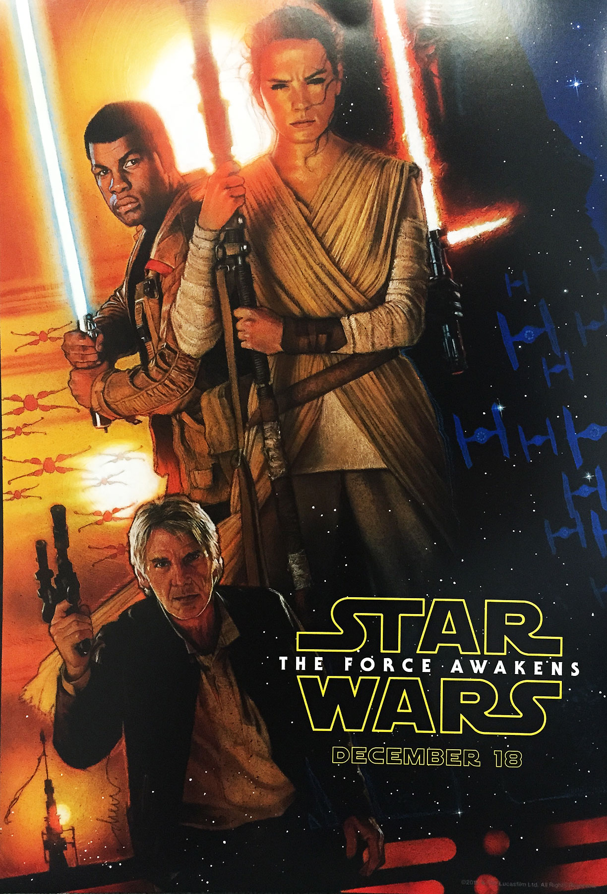 First up, they released this awesome new poster for The Force Awakens, by artist Drew Struzan, who drew famous posters for the other movies!